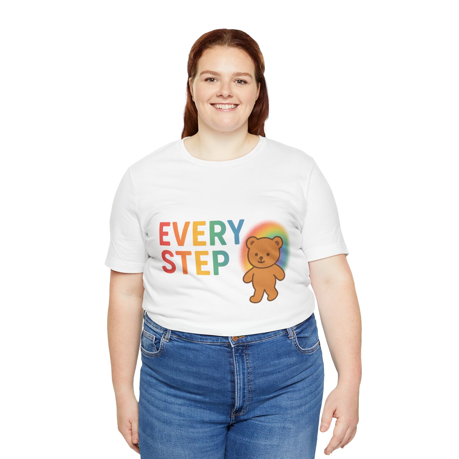 Every Step Bear Tee - Colorful Unisex Jersey Shirt, Cute Gift for All, Motivational Apparel, Rainbow Shirt for Every Occasion